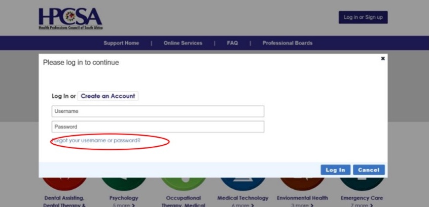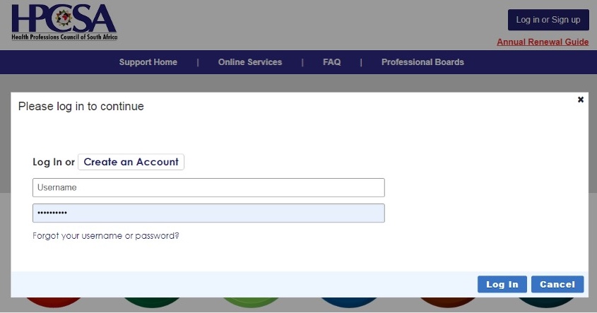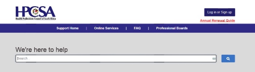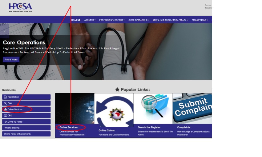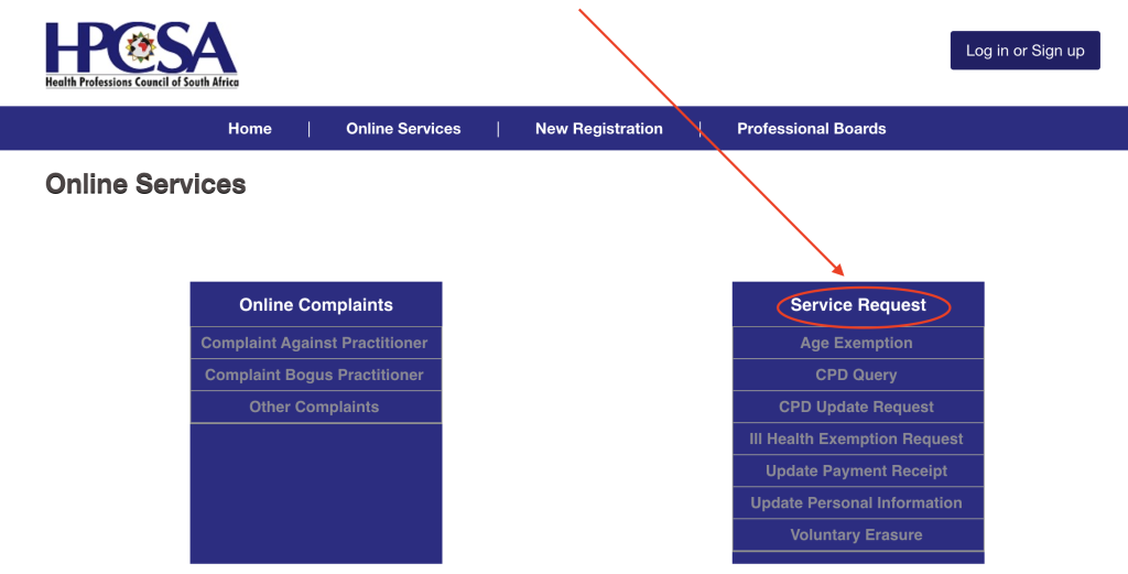 Practitioners who are not familiar with the online CPD submission system, can log into the main HPCSA website choosing ‘Online Services’ as displayed below.