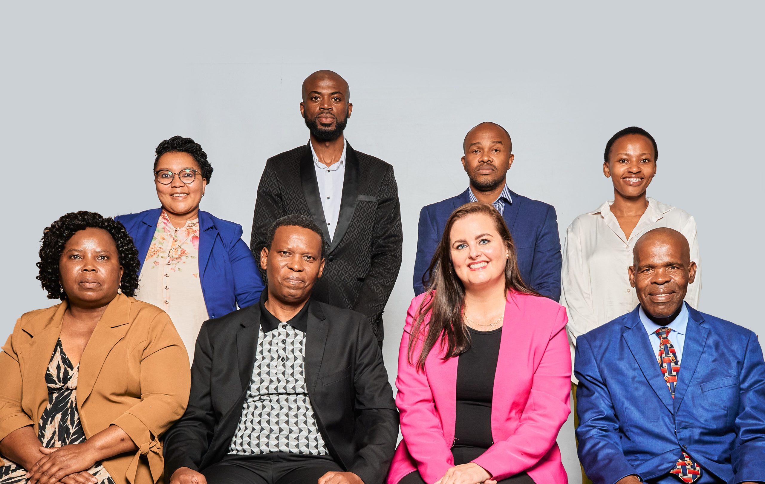 Back from left to right: Mr Lucky Gabela, Mr Audience Maluleke, Mr Samuel Mabunda, Dr Ansunel de la Rey, Mrs Anthea Pinto-Prins, Dr Nashua Naicker, Dr Martha Kharivhe, Mr Victor Khanyile and Mr Fhatuwani Waleed Mphaga.